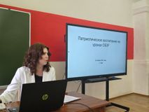 Обобщением опыта по патриотическому воспитанию в нашей школе стал видеоконтент "Патриотическое воспитание в МБОУ "Сурская СШ №2": возможности и ресурсы". Над его созданием работали Веселова Э.Н., зам.директора по ВР, Лазарев И.В., руководитель "Точки Роста". Это опыт школы в целом, а также деятельность Центра детских инициатив, руководителем которого является Мурина Я.В. - советник по воспитанию, работа школьного музейного объединения "Наследие" - руководитель Алфёрова Н.Л., юнармейское движение - руководитель Лазарев Д.Ю. Также был представлен опыт педагогов школ округа: классных руководителей, учителей-предметников, педагогов ДО, советников по воспитанию, руководителей школьных музеев. От нашей школы выступили Порохина С.В. и Алфёрова Н.Л.